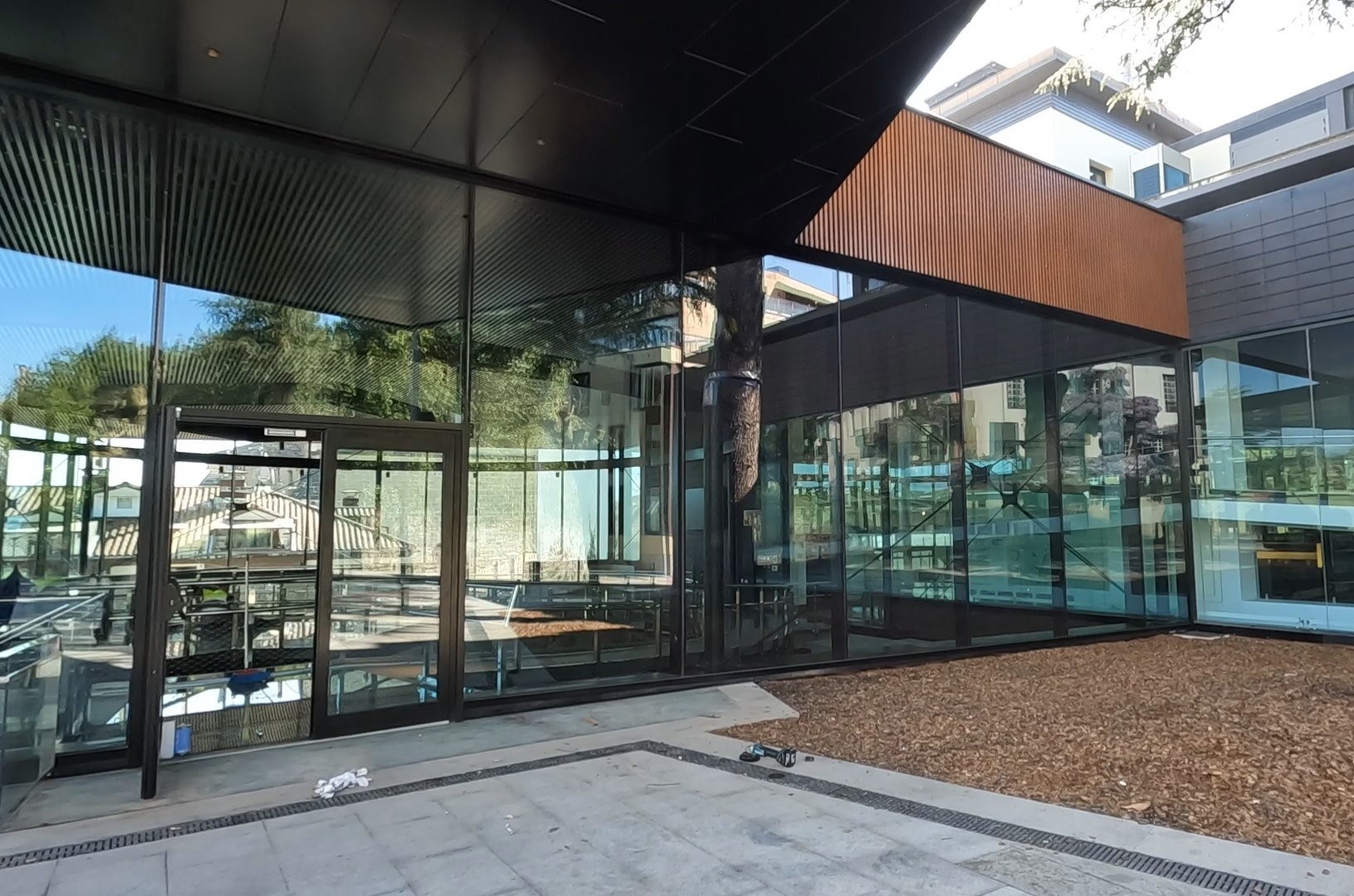 Cerramiento de las termas romanas de Oiasso en Irún, mediante muro cortina sin montante vertical.