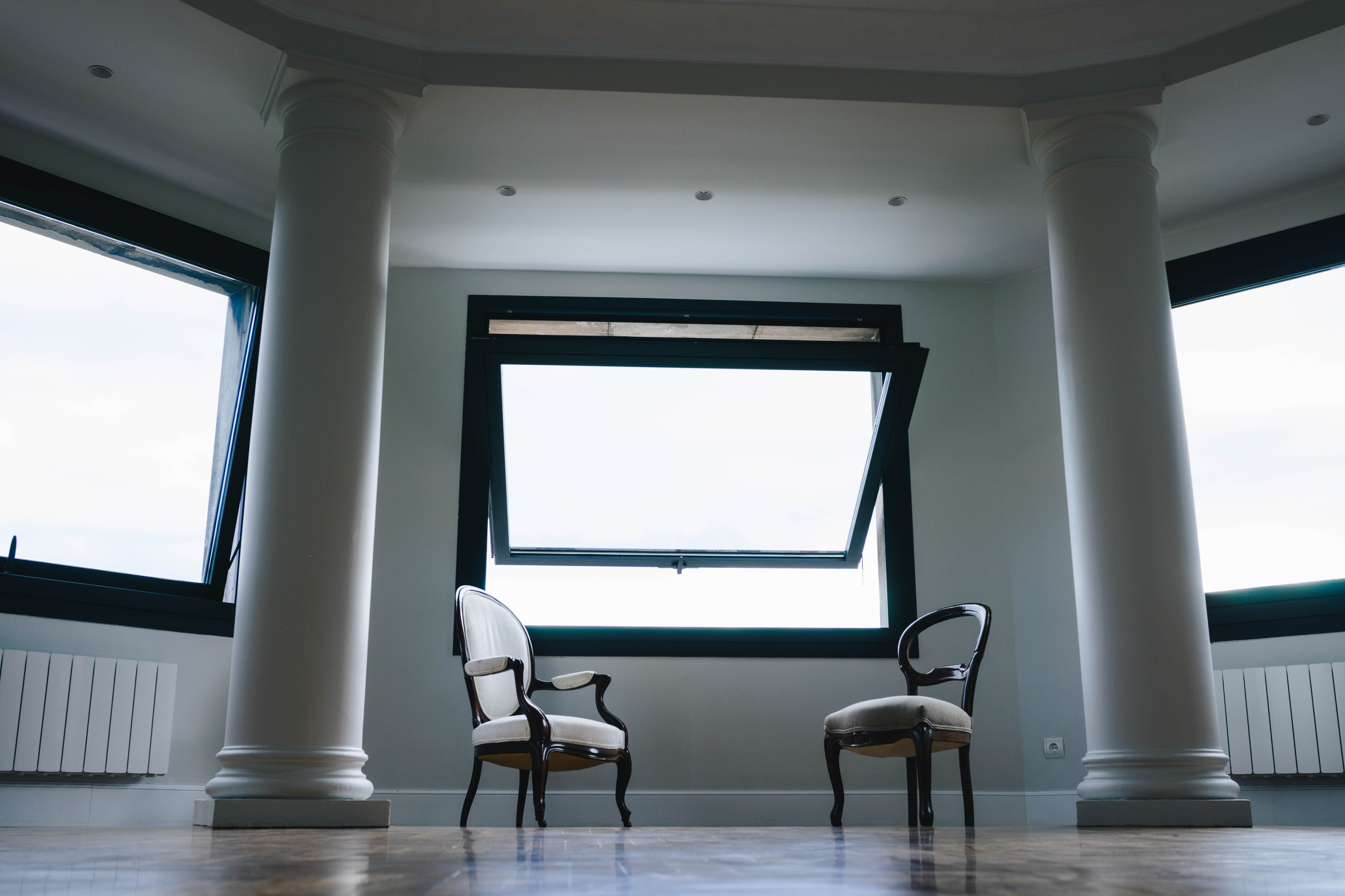Ventanas de aluminio basculantes de grandes dimensiones sin montantes permitiendo su limpieza desde el interior.